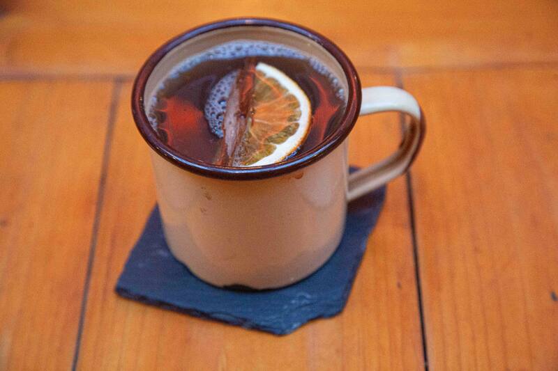 Para pasar el frío pide un "Quiero un tecito" ($ 5.500). Así te llevarán a la mesa una taza enlozada (o choca), con un té con malicia. Sí, porque lleva miel, limón, whisky Jack Daniel's Honey y canela. Una delicia que te ayudará a calentar el cuerpo en este invierno y que creó el bartender Víctor Venegas, quien se unió con el ingeniero en minas Patricio Soto, para rescatar los sabores de antaño y llevarlos al barrio Bellavista.