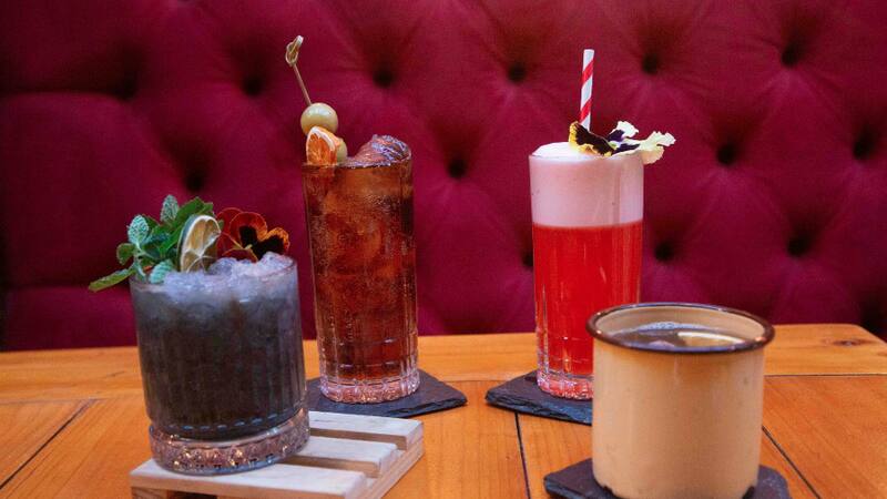 Su inspiración son los tragos tiki, aquellos que desde la década del 30 destacan por tener colores y adornos, como su "Black mai tai" ($ 5.900), que reversiona al clásico "Mai Tai" con jugo de naranja, para presentarlo en una modalidad oscura, con un mix de rones, jarabe, limón, horchata de sésamo negro y carbón activado. Es una delicia refrescante que, además, lleva menta y flores.
