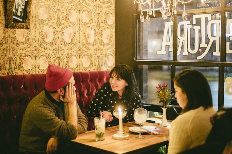 De look vintage, murallas de ladrillo a la vista, papel mural floreado, lámparas de lágrimas y sillones de terciopelo, el ambiente ahí es ideal para conversar, sobre todo, porque de fondo suena desde David Bowie hasta Amy Winehouse.