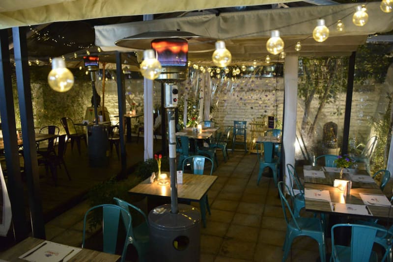 Este restaurante thai es una opción exótica del barrio. Tiene dos pisos, pero se come en la terraza del patio, llena de detalles budistas.