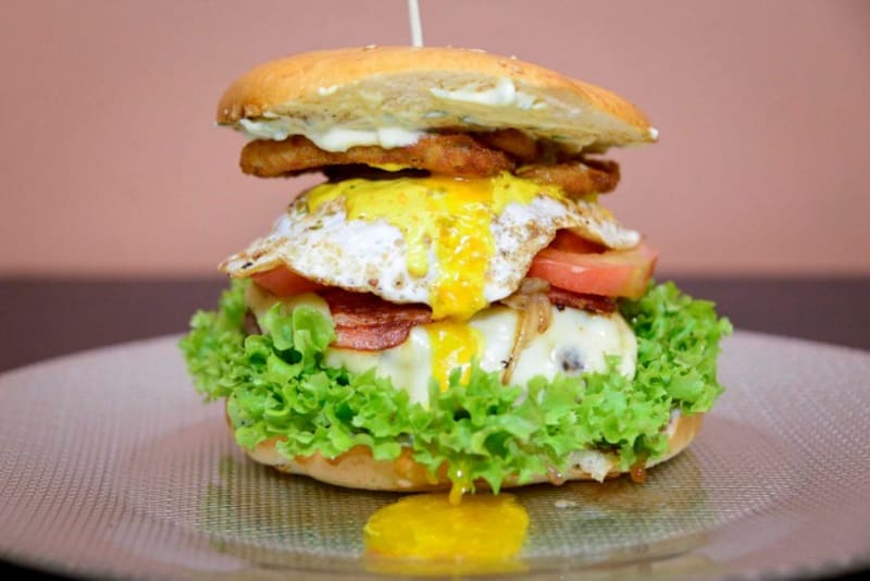 Servida en un pan brioche, viene con cebolla crocante, lechuga, tomate y huevo frito con una yema que escurre apenas pone en el tenedor en ella. Queda aún más rica con las salsas caseras, como la tártara.