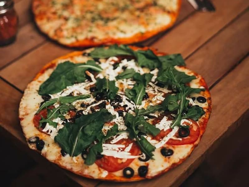 Acá la especialidad son las pizzas, de masa delgada y crujiente, que se pueden pedir con mitades distintas para compartir (desde $6.800 las 32 cm).