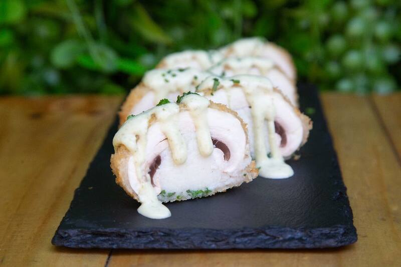 En Kambo Sushi puedes partir con entradas como los champi furai ($ 4.200), que son seis champiñones rellenos de queso crema vegano, con ciboulette, que llegan calentitos, apanados en panko y cubiertos de una salsa acevichada vegana.