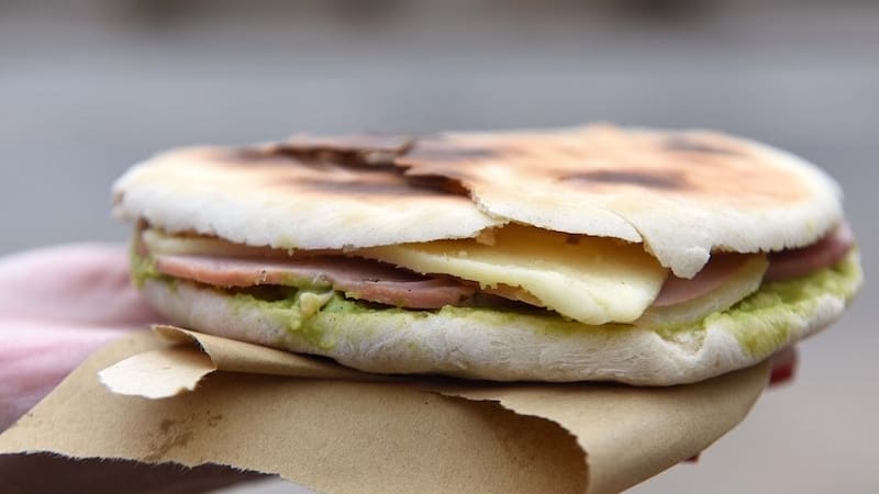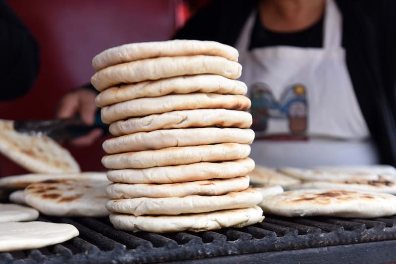 Churrascas que puedes pedir sola ($ 500) o con el relleno que elijas, para acompañarlas de leche con Milo ($ 600), café ($ 500) o té ($ 500).