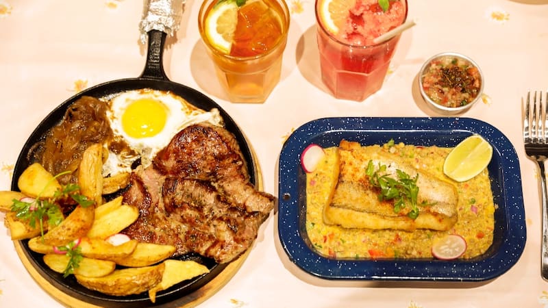 También bien generosa, porque los platos Maestranza son grandes, con baranda, servidos en sartenes y fuentes enlozadas, tan sabrosos que de seguro terminas pasando el pancito por el juguito que queda.