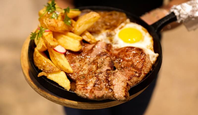 Además de las panitas de vacuno a la plancha ($ 8.900), que vienen con un arroz tipo risotto de zapallo camote; o el inspurable bife americano a lo pobre ($ 14.900), con papas fritas con cáscara, cebolla bien caramelizada y el infaltable huevo frito.