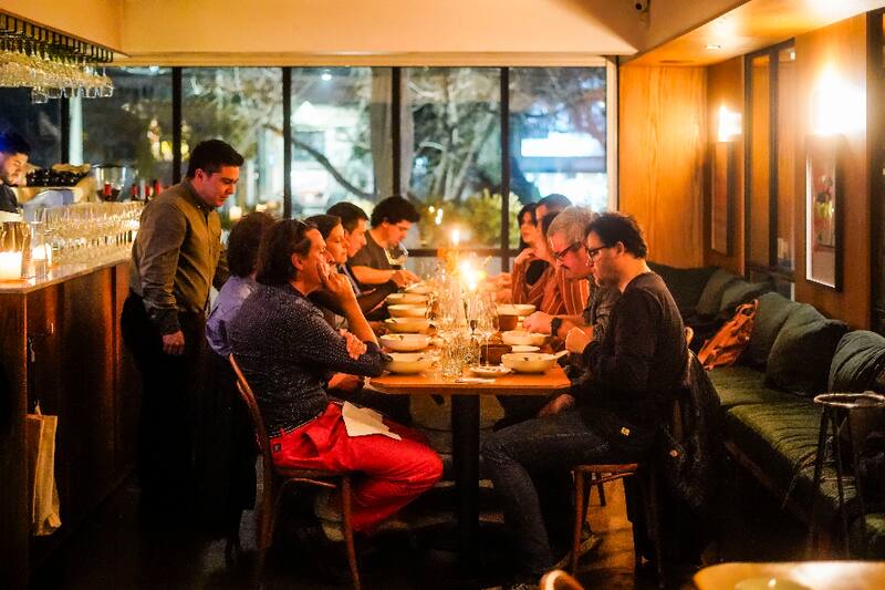 Primero, Leonera blanco moscatel ($ 4.500), la copa de la casa, de Guarilihue, región de Ñuble. "Se piensa que moscatel es un vino dulce y no es así. Lo particular de este vino es que es un solera, son mezclas de años y pasa por velo de flor, como se hacen los vinos del jerez", explica Sebastián Lobos.