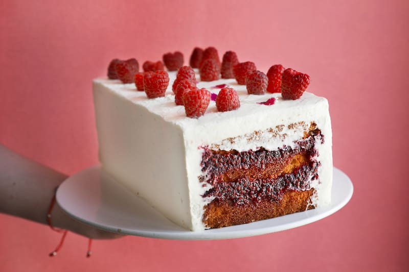 Otra opción podría ser que preguntas por sus tartas, como la de café, avellana y frambuesas; o alguna de sus últimas creaciones, como el croissant relleno de pastelera de chocolate, crema de avellanas y frambuesa.