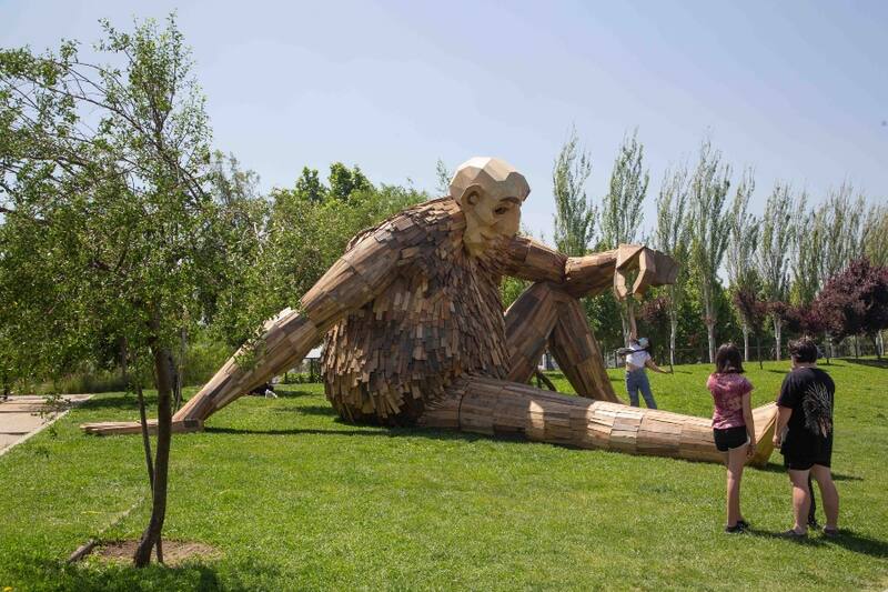 Así, cada vez que vayas a pasear a este pulmón verde a orillas del Mapocho podrás apreciar y hasta tocar esta creación del danés Thomas Dambo, hecha de madera reutilizada y que mide cinco metros de largo.