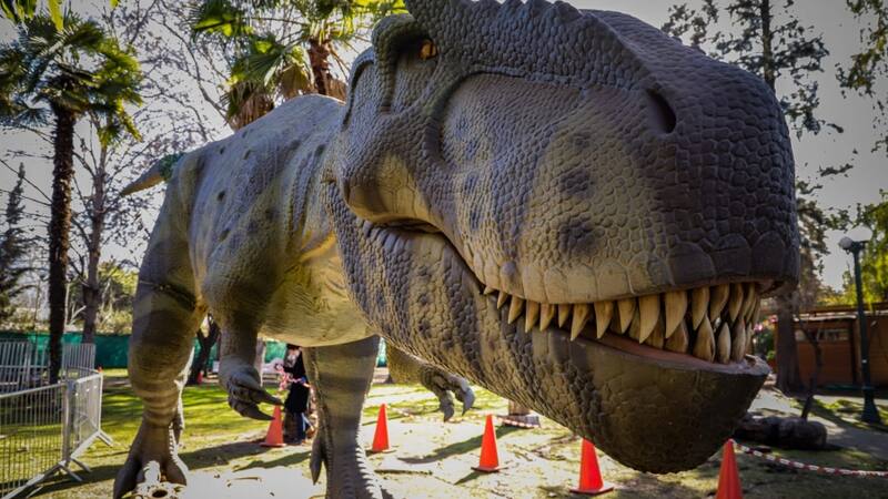 El Parque García de la Huerta, que se ubica a un par de cuadras de la Plaza de Armas de San Bernardo, se transformó en un parque jurásico por las vacaciones, con animales prehistóricos de hasta 12 metros de largo.