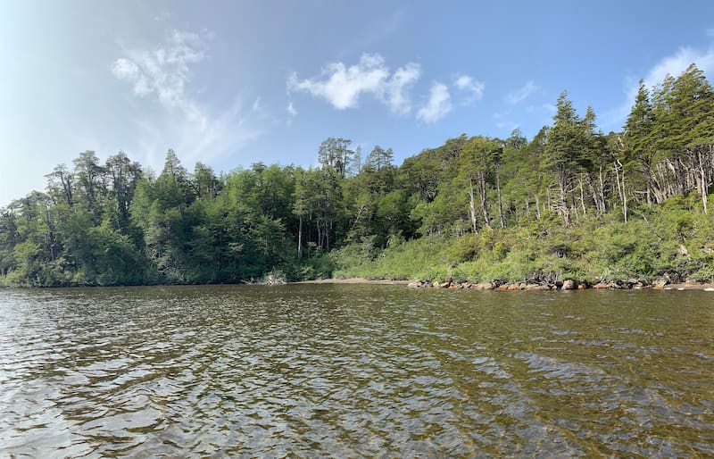 Nos recibe Danilo, quien durante esta temporada está administrando el camping, con el objetivo de juntar lo suficiente para viajar durante el resto del año. Aquí sólo caben 30 carpas y no es posible reservar, por lo que te recomendamos llegar temprano para asegurar tu lugar. Los sitios se encuentran rodeados de coigües, arbustos de chauras con flores blancas y musgo recién crecido. Hay agua potable y una mesa en cada sitio, pero no electricidad.