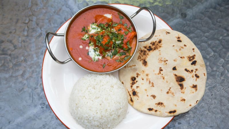 Ojo, todos los platos se acompañan de arroz blanco y mejor si le agregas un "naan", el tradicional pan de allá que tienen en dos sabores: mantequilla ($ 400 c/u) y ajo ($ 600 c/u).
