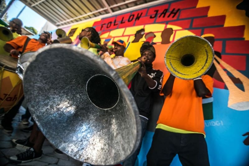 La banda a pie Follow Jah es de Pétion-ville, en la periferia de Puerto Príncipe, y nació a comienzos de siglo con motivo del carnaval y otras fiestas tradicionales y comunitarias. Desde 2010 realizan una labor musical continua, que los ha llevado a participar, desde 2012, en las noches del Festival Internacional de Jazz de Puerto Príncipe y a viajar a Europa representando a la cultura musical haitiana.