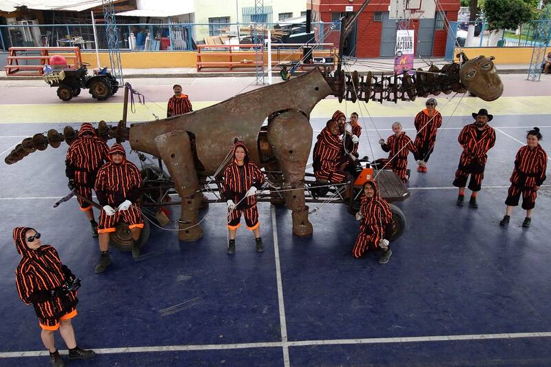 Creado por la compañía belga Theater Tol para espacios públicos, se ha presentado en países como Singapur, México y Australia y Bélgica. Una agrupación que ya había estado en Santiago a Mil 2015 presentando su aplaudida obra Pedaleando hacia el cielo.