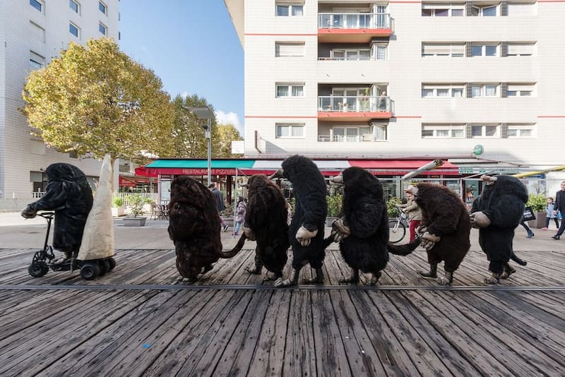 Creada por el artista francés Philippe Quesne, un grupo de esos animales saldrá de sus cuevas para llegar a Santiago, por donde pasearán y recorrerán distintos rincones para mezclarse con la gente.