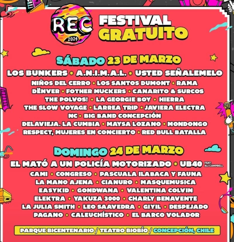Ahí, REC 2024 se desplegará por cuatro escenarios, tres al aire libre y uno al interior del Teatro Biobío, con más de 35 conciertos.