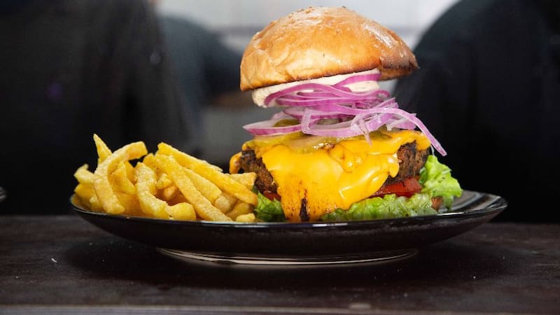 Además de alguna de las hamburguesas, como la incomparable ($ 6.990 con papas fritas), que son 200 gramos de hamburguesa de quínoa y garbanzos con palta, berros, queso y pesto de albahaca.