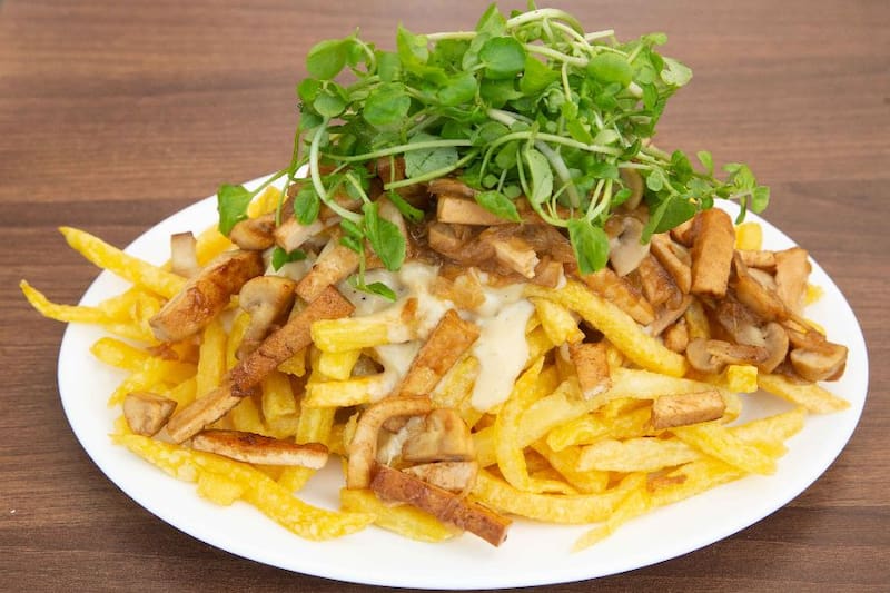 Para compartir pide alguna de las chorrillanas, como la Like a virgin ($ 8.990), que son 700 gramos de papas fritas totalmente caseras, hechas en el momento, con salsa de queso, cebolla caramelizada, champiñones y tofu.