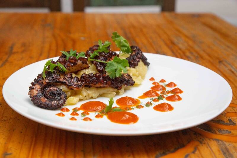 Sigue con su pulpo grillado y cocido a baja temperatura, que degustarás con un parmentier de papa y pimentón asado ($ 7.600) que es de ensueño.