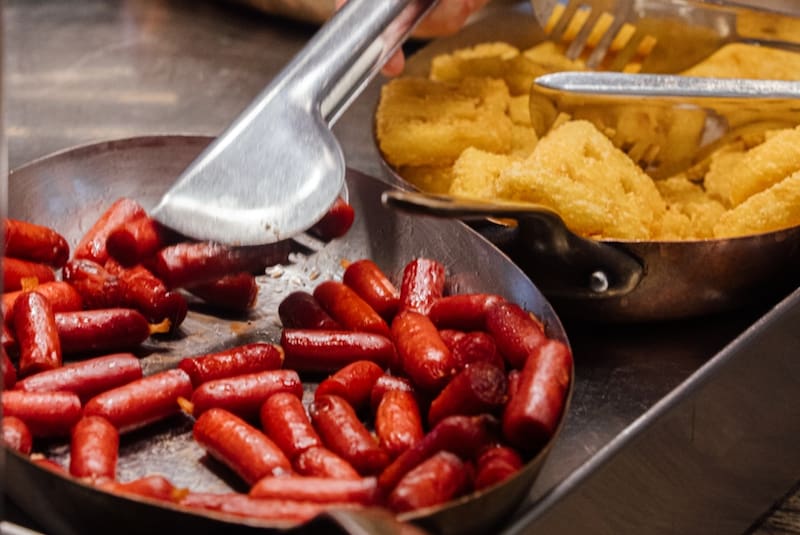 Otras preparaciones que hay en las estaciones son ensaladas, pescados como salmón ahumado y gravlax, sopas, cremas y tocino crocante.