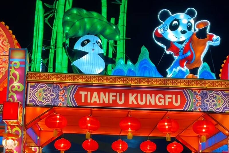Ahí, Tianfu Kungfu tiene más de un mes cautivando al público con sus estructuras de símbolos de la cultura china que por las noches se iluminan y una novedad: shows tradicionales.