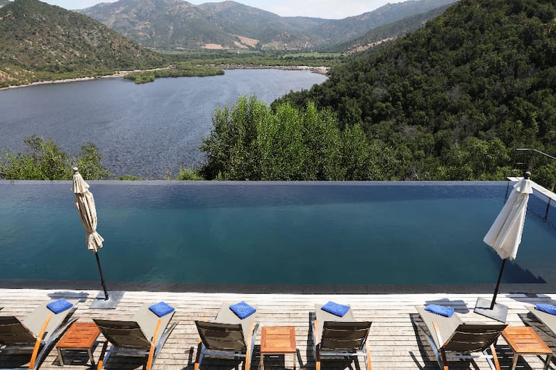Además de una vista en 360 grados al valle de Millahue, Spa, y una piscina exterior sin fin, o infinita.