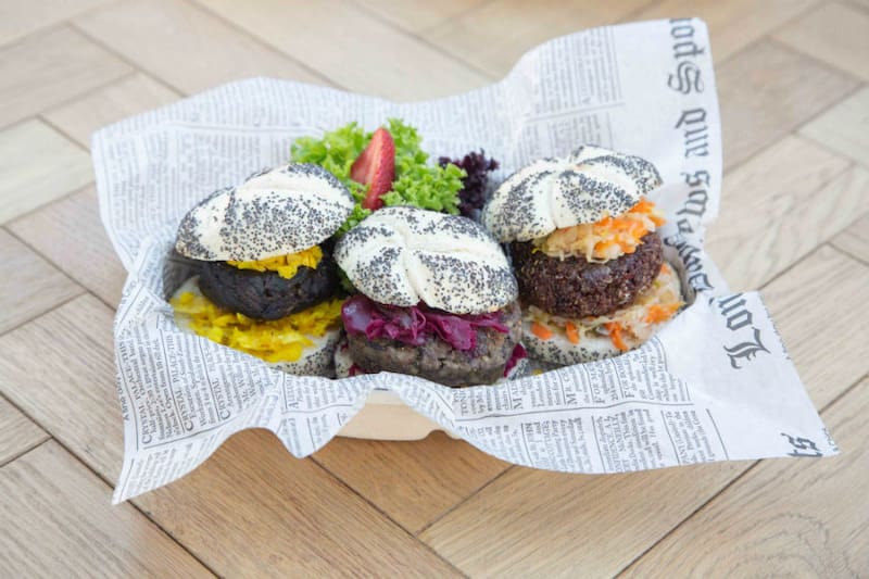 Asimismo, para los vegetarianos tiene unos sándwiches de setas, quínoa y legumbres ($ 7.900 los tres), que llegan a la mesa en una fuente de cartón y acompañados con repollo y betarraga fermentada en un delicioso pan con el tamaño perfecto para comer con las manos.