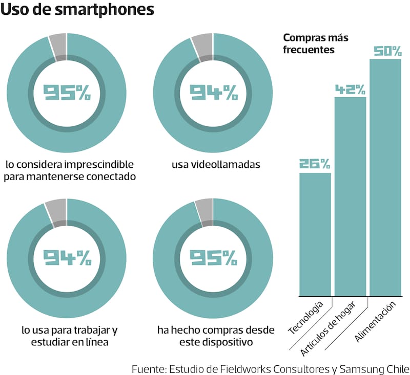 Un estudio de Fieldworks Consultores y Samsung Chile, realizado en junio, confirmó la importancia que las pantallas han tenido para todos durante la pandemia. Desde lo fundamental, como el teletrabajo o los estudios, comunicarse con familiares o amigos, realizar las compras del hogar y hasta tomar clases de yoga (aumentaron al doble, según una encuesta Sparta y Cadem), nunca se estuvo tan atento a lo que una pantalla podría mostrar.