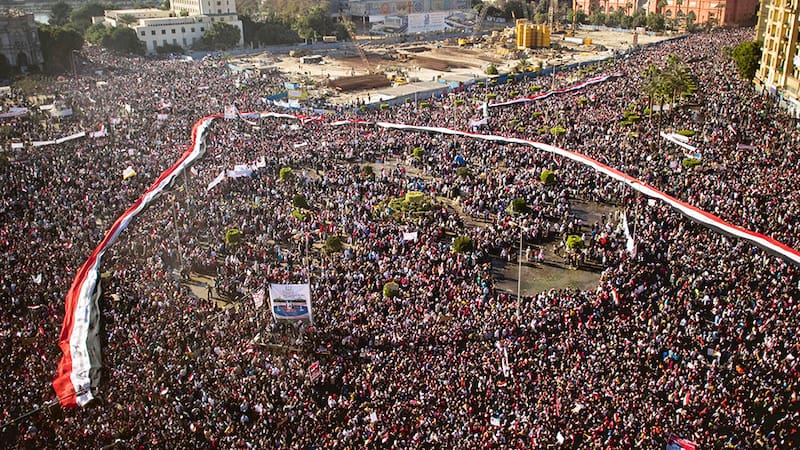 Como si fuese un dominó, luego de Túnez fue el turno de Egipto. El gigante de la región vio caer a Hosni Mubarak -que tomó el poder en 1981- luego de 18 días de masivas manifestaciones en la Plaza Tahrir de El Cairo. Tras el derrocamiento de Mubarak, la ciudadanía exigió avances hacia una transición democrática, por lo que el jefe del Ejército del país, Mohamed Hussein Tantawi, convocó a elecciones en julio de 2011, de las que resultó electo Presidente Mohamed Morsi, de los Hermanos Musulmanes.