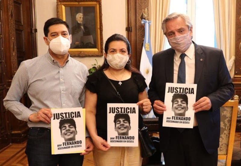 El caso llegó hasta la Casa Rosada, lugar en que el Presidente Alberto Fernández recibió a Silvino Báez y Graciela Sosa. “Conversamos acerca de la vida de Fernando y por sobre todo hablamos de la justicia para que no quedé en la nada, para que no haya otro Fernando en este mundo, que fue a divertirse y no regresó”, comentó la madre.