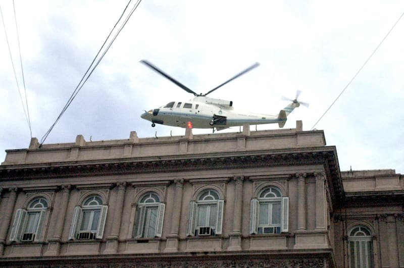 De la Rúa, del ala conservadora de la socialdemócrata Unión Cívica Radical (UCR), renunció y escapó en helicóptero de la Casa Rosada, rodeada por manifestantes, al atardecer del 20 de diciembre. En 11 días, Argentina tuvo cinco presidentes.