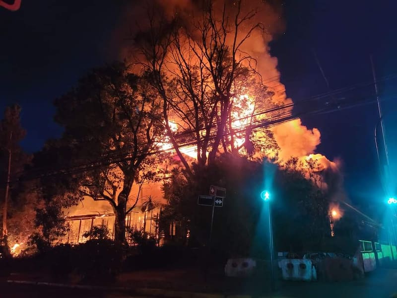 Bomberos y Carabineros ya trabajaban en el lugar. Los empleados del bar, que estaban en un local de comida cruzando la calle, observaban todo llorando. En cosa de horas la casona de madera, construida hace 116 años, quedaría reducida a cenizas.