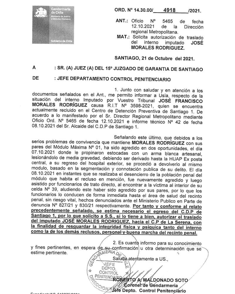 Si bien el venezolano José Morales no cumplía un rol central en la mafia china, el traficante sufrió un intento de asesinato a sangre fría en la sección de alta seguridad de Santiago 1, recibiendo dos estocadas con un cuchillo artesanal y golpes que le provocaron una fractura.