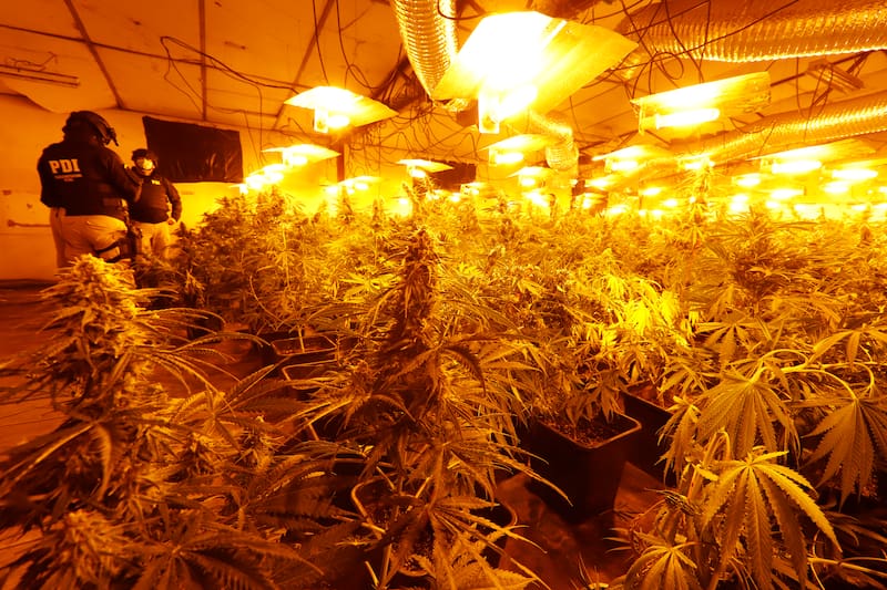 En la propiedad sorprendieron a Jianliang Sun y Gao Wen, dos ciudadanos chinos sin documentación, quienes cuidaban una plantación de 1.466 plantas de cannabis y 244 kilos de marihuana procesada, las cuales estaban implementadas en un circuito indoor de alta sofisticación con luces led especiales, estufas y riego automático.