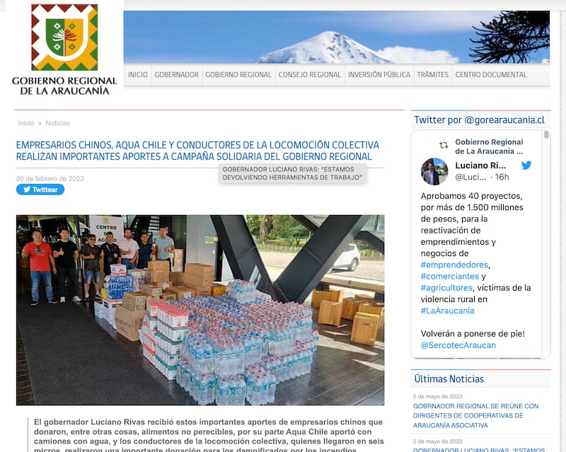 En la misma página web de la Gobernación de La Araucanía, destacaron el rol de Caixin Yu, quien aseguró que Chile es su segundo país. “Lo tenemos en el corazón, así que hacemos todo lo que podamos para ayudar a todas las familias chilenas”, dijo el pasado 20 de febrero cuando fue a dejar el aporte.