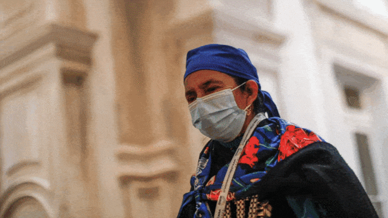 Una hora y media después de finalizada la segunda sesión de la Comisión de Derechos Humanos de la Convención Constitucional, Francisca Linconao atraviesa las puertas del ex Congreso Nacional. Con un pañuelo azul en la cabeza y un polar del mismo color, camina mirando al frente. A su lado, la intérprete de mapudungun Elizabeth Huenchual, también viste acorde a la tradición mapuche. Como todos los días, la convencional Linconao se dirige a almorzar al departamento que le arriendan a unas cuadras del lugar donde opera la Convención Constitucional. Sale discretamente del recinto, pero no pasa desapercibida. “Mari mari”, la saluda un hombre que se cruza. Después se mezcla con la muchedumbre del centro de Santiago y se transforma en un peatón más. Si no fuera por la vestimenta, difícil sería adivinar en la calle que esa mujer de baja estatura es la máxima autoridad del pueblo mapuche en la Convención.