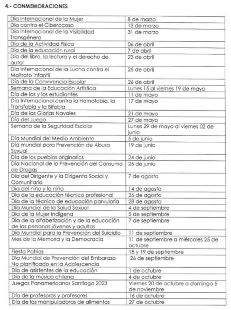 *Esta nota fue modificada posterior a su publicación dado que se apuntó erróneamente a que se excluirían del calendario escolar 2023 el Día del Carabinero, de la FACh y de las Glorias del Ejército.