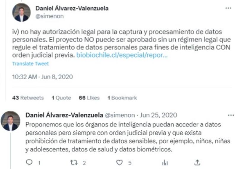 En ese sentido, plantean que precisamente con él a la cabeza de esa tramitación el gobierno ha hecho indicaciones que constituyen un retroceso a las capacidades que actualmente tienen los servicios de inteligencia, “debido al excesivo proteccionismo de datos personales, en materia de agentes encubiertos y creación de centros de fusión de datos”.