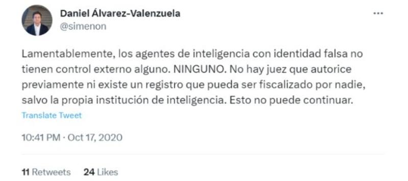 Pese a que el encuentro habría buscado calmar las aguas, los reproches hacia Daniel Álvarez no se detuvieron. Es más, surgieron reproches referentes a otra definiciones expresadas por él. Esta vez, por su postura frente a la Ley de Inteligencia.