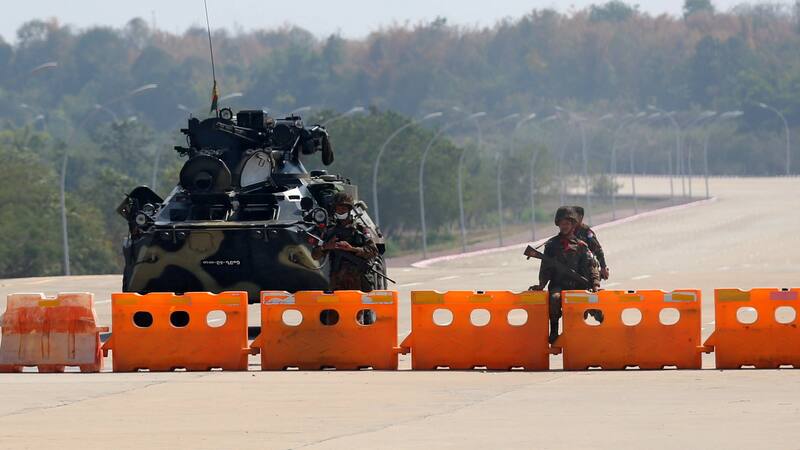 El Ejército de Myanmar en un retén camino al Congreso en Naypyitaw, hoy. Foto: Reuters STRINGER