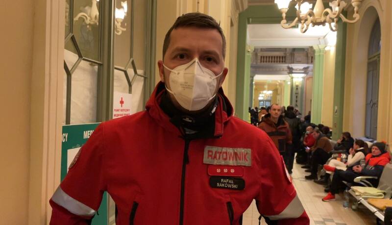 Rafael Sakowski es polaco y el responsable del improvisado puesto de la Cruz Roja en la estación de Przemysl. Ahí, en lo que eran oficinas de la Compañía Estatal de Ferrocarriles, atienden día a día a cientos de desplazados que necesitan atención médica. Según Sakowski , los principales problemas con los que llegan los desplazados son hipotermia, falta de alimentación y agotamiento, lo que se suma a la condición de estrés psicológico por el que deben pasar. “Acá nos hemos preparado para recibir gente que viene escapando de una guerra, que ha pasado días en la frontera esperando cruzar o que ha tenido que salir de sus casas con lo puesto. No sólo estamos dando atención médica, también contención”, comenta el polaco desde la puerta de la sala de atención mientras voluntarios y refugiados llegan y salen en busca de información, gestionar un traslado o preguntar por algún malestar.