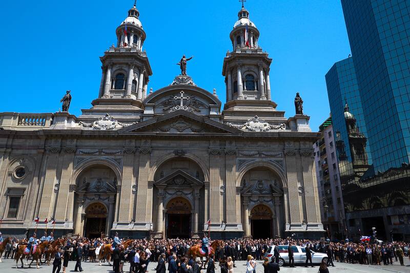 Una vez terminada la ceremonia, el Regimiento Escolta Presidencial N°1 de Granaderos trasladó, en una cureña tirada por seis caballos, el féretro del exmandatario, recorriendo las calles Catedral, Morandé con Compañía hasta llegar a la Catedral Metropolitana, donde continuó la misa fúnebre, dirigida por el arzobispo de Santiago, Fernando Chomalí.