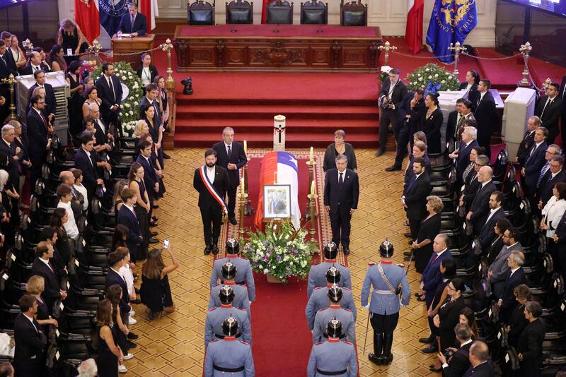 Con la presencia de la familia del fallecido expresidente, el homenaje republicano fue encabezado por el Mandatario Gabriel Boric, quien con su banda presidencial presenció el trayecto de la carroza. Una imagen muy similar a la que se vio a la exmandataria Michelle Bachelet en el funeral del Patricio Aylwin, en 2016.