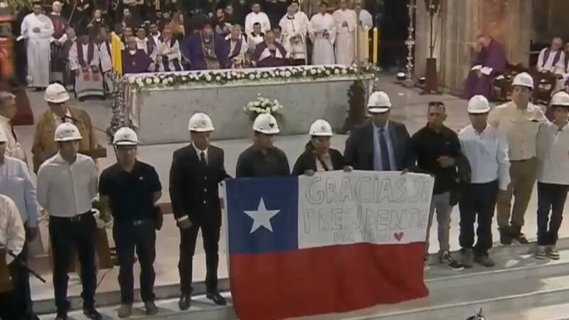 Otro de los momentos emotivos que se vivió en la jornada fue protagonizado por los mineros rescatados de la mina San José en 2010, que fue además uno de lo hitos de la primera administración del expresidente.