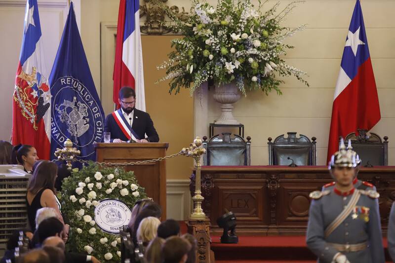 Minutos después, arribó el Presidente Gabriel Boric y con la entonación del himno nacional se inició la ceremonia, donde también se hicieron presentes los exjefes de Estado Eduardo Frei Ruiz-Tagle y Michelle Bachelet.