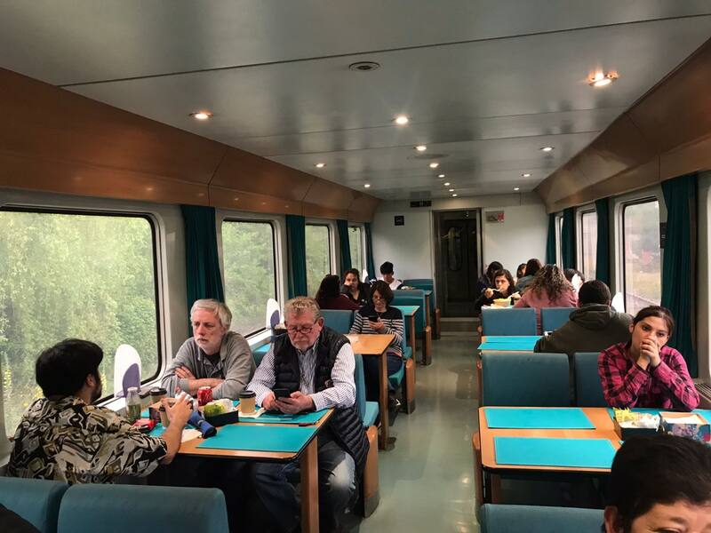 Ante la “novedad” del viaje, los pasajeros se pasean por los vagones. Toman imágenes de bosques, ríos, araucarias y fauna silvestre. Pero otros leen su libro preferido o escuchan música con sus modernos audífonos.