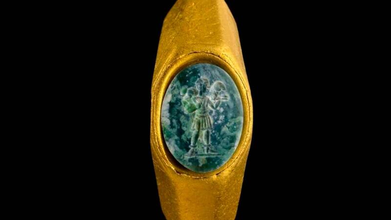 Descubren antiguo anillo de oro cristiano en un tesoro romano.