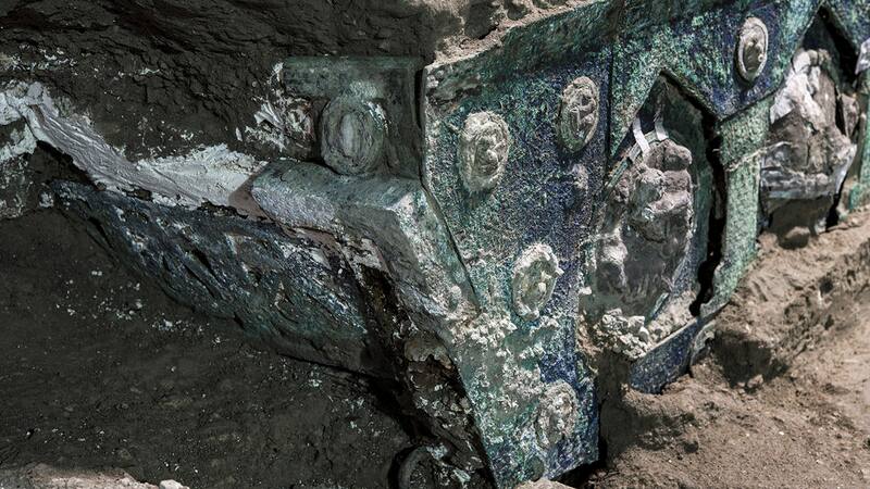 Investigadores desenterraron un carruaje ceremonial romano antiguo único de una villa a las afueras de Pompeya, la ciudad enterrada en una erupción volcánica en el 79 d.C. El ministerio de cultura lo calificó como "un hallazgo único, sin precedentes en Italia", puesto que hasta ahora solo se había encontrado vehículos funcionales utilizados para el transporte y el trabajo en la zona, pero no para ceremonias.