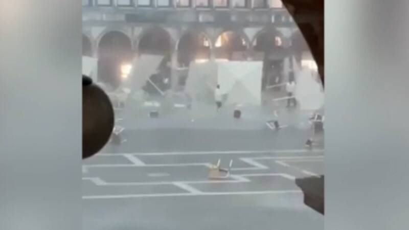 En Venecia, los vientos huracanados afectaron parte de la estructura del campanario de San Marcos y los turistas tuvieron que ser evacuados del lugar. La tormenta arrasó violentamente con sillas y mesas dejando impactantes registros. Hangares y aviones quedaron destruidos en la provincia de Módena.