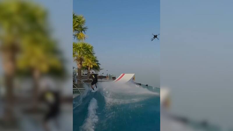 Brian Grubb, un atleta estadounidense, hizo historia con su proyecto “WakeBASE”, al ser impulsado con un dron a bordo de un skate acuático, para luego saltar 294 metros en paracaídas de la cima de un edificio en Dubái.
